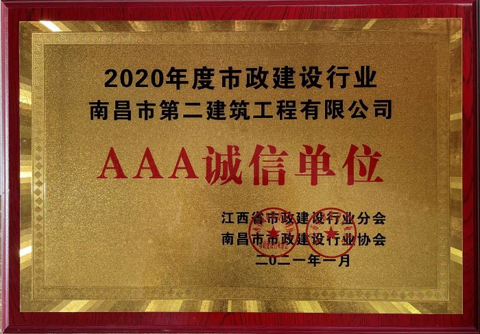 日前,江西省市政建設行業(yè)協(xié)會和南昌市市政行業(yè)協(xié)會召開兩年一次的先進表彰大會,我公司優(yōu)異成績連獲2020年度省、市市政建設行業(yè)“先進單位”和“AAA誠信單位”稱號。